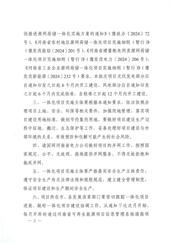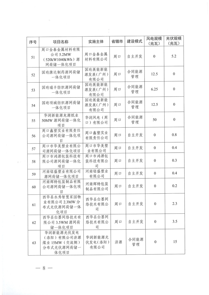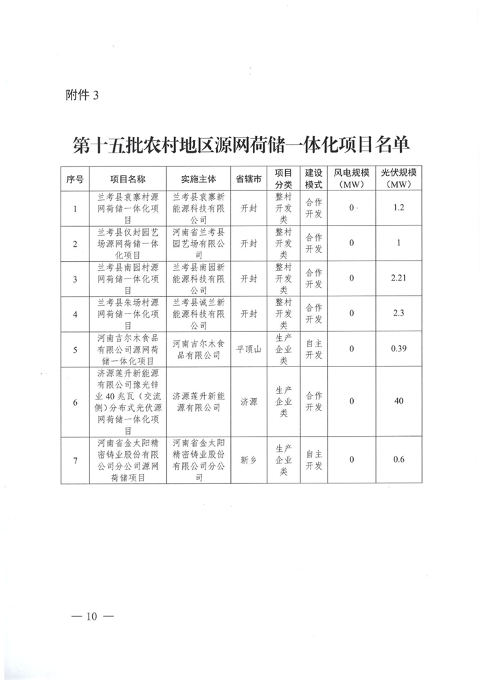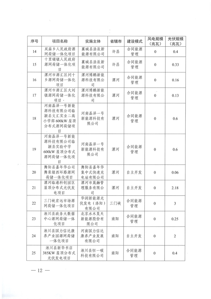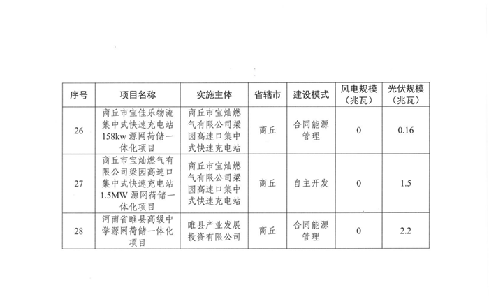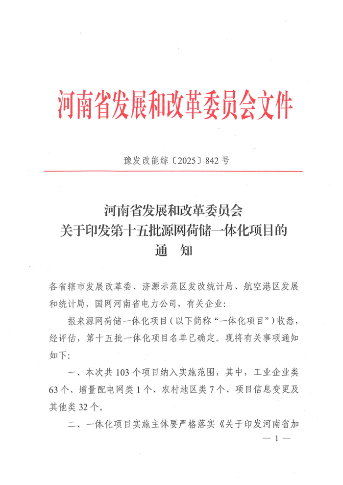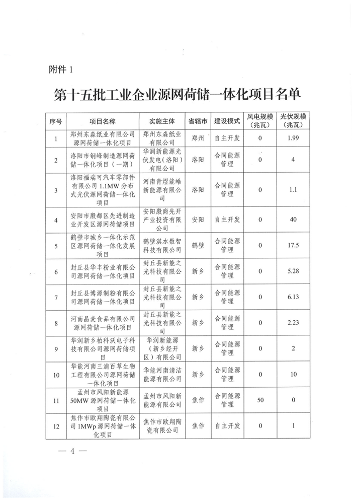 储能中国网获悉,11月21日,河南发改委印发关于实施第十五批源网荷储一体化项目的通知。根据项目名单,本次共103个项目纳入实施范围,其中,工业企业类63个、增量配电网类1个、农村地区类7个、项目信息变更及其他类32个。风电规模共计163.75MW,光伏规模共计601.51MW。 文件提出,本批次项目光伏发电部分应自通知印发之日起6个月内开工建设,风电部分应自通知印发之日起6个月内完成核准,自核准之日起12个月内开工建设。 配储方面 增量配电网类源网荷储一体化项目:申报项目原则上应配置不低于新能源规模15%的集中式独立储能装置。 农村作坊类源网荷储一体化项目:根据实际需要配置,无强制配储要求。 生产企业类源网荷储一体化项目:原则上应按照不低于新能源装机功率的20%、时长不少于2小时的要求配置新型储能设施。 整村开发类源网荷储一体化项目:整村开发类项目原则上应按照不低于新能源装机功率的50%、时长不少于2小时配置储能设施,保障全村自供电比例不低于80%。 原文如下: