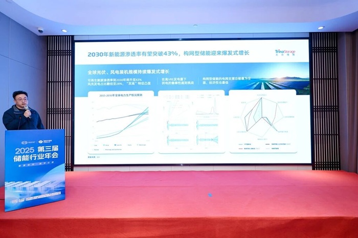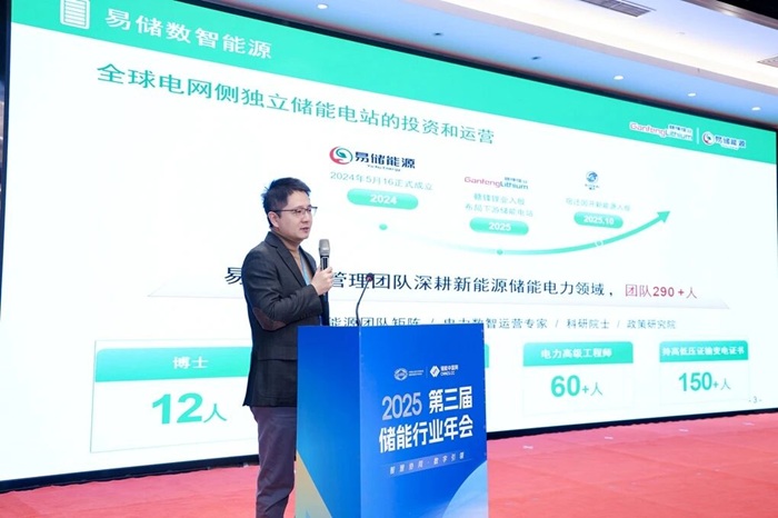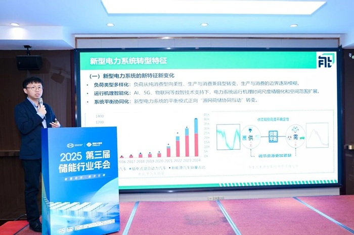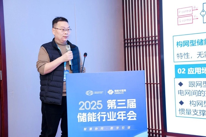 “智慧协同 数字引领 ”2025年12月27日,由中国电力技术市场协会储能设备技术专委会、储能中国网主办,IEEE PES 储能技术委员会(中国)、北京鉴衡认证中心等支持的“2025第三届储能行业年会”在北京成功举办。 会议旨在分析2025年新型储能产业链各环节发展情况并研判2026年产业发展走势;推动新型储能从“跟跑”向“领跑”跃升发展和前沿技术应用,探索解决储能发展瓶颈的思路和方法,搭建行业了解政策信息、技术动态和供需合作平台。会议通过专家主旨报告、主题演讲、专题论坛等环节,内容围绕新型储能并网及场站智控创新技术、长时(混合)储能技术暨数字化储能技术研讨、工商业储能市场开发暨零碳园区建设和CNNES2025储能中国年度创新成果发布方面展开。中国电力技术市场协会储能设备技术专业委员会主任文辉出席大会并致辞,以及行业主管部门、国网、南网、中国科学院电工所、华北电力大学国家能源发展战略研究、国网冀北电力、华能、国电投、中国电建、易储数智能源集团、平高集团、华为、阳光电源、南瑞继保、中电电气集团、天合光能、宁德时代、比亚迪、新源智储、华润电力、海博思创、电规总院、国网新疆电科院、煦达新能源、清研电子、清安储能、新源智储、新能安、日出东方、瑞源电气、远东电池、高泰昊能、许继电力电子、华北电力大学、清华大学、山西安装集团、中移能源、中建八局、媒体等领导、专家近400余人参加。 开幕主持 2025第三届储能行业年会开幕及主旨报告环节由中国科学院电工研究所研究员、IEEE PES储能技术委员会(中国)秘书长唐西胜主持。 嘉宾致辞 中国电力技术市场协会储能设备技术专业委员会主任文辉致辞时表示,储能作为新型电力系统的核心要素,已从“政策驱动”向“市场驱动”跨越,成为保障能源安全、促进新能源消纳的关键支撑。他指出,中国电力技术市场协会是1994年6月在民政部登记的成立的具有独立社团法人资格全国性社团组织,根据中央社会工作部2024年10月28日印发的中社办发【2024】20号文件精神,明确国家能源局为“协会”主要行业管理部门。立足新型储能行业、服务储能设备技术企业、做好政府参谋是中国电力技术市场协会储能设备技术专业委员会的职责。 文辉表示,构建新型电力系统是当前电力行业的主要工作,储能行业服务工作越来越重要。数字化技术的深度渗透,正推动储能系统从规模化升级为具备自主决策能力的智慧化高质量的调节电源;而跨领域、跨企业的协同合作,更是破解产业发展瓶颈、释放多元价值的关键路径。下一步中国电力技术市场协会储能设备技术专委会将围绕做好“电力”文章。一、要以新型电力系统(电力系统是储能的主战场)建设开展行业服务工作;二、帮助先进储能设备技术做好技术、市场推广工作;三、做好储能设备技术专委会调研走访工作,优化储能专委会委员结构,进一步增强专委会凝聚力。 上午主旨报告分享 上午主旨报告环节共有7位行业权威专家分别做分享,对新型储能产业政策、市场回顾、解读及发展趋势分析,储能产业国内外市场机遇与挑战,136号文与新型储能产业发展,构网型储能技术、数智化运营在独立储能场站的探讨与实践以及新型储能产业政策、商业模式研究和大容量储能集成技术、应用等进行全面分析。 华北电力大学国家能源发展战略研究院执王鹏行院长分享了《中国式现代化能源战略新思维与储能发展》主旨报告。他从能源安全新战略到能源强国、中国式现代化能源治理策略、电力市场化及政府治理“十五五”储能发展的认识多角度剖析了加快新型能源体系建设,扩大绿电应用以及峰谷电价退场对新型储能影响进行了分享,并对未来储能市场和政策两方面进行全面解读。 国网冀北电力有限公司电力科学研究院新能源所吴林林所长分享《构网型储能技术初探与冀北实践》主旨报告。他对构网型技术、构网型设备要求并结合冀北构网型技术研究与实践做了深度介绍,其中他表示,我国风光富集的“三北”地区多遵循“大规模集中式开发、高电压远距离送出”的典型模式,常规电源少,网架结构薄弱,弱电网特征突出,新能源需匹配主体电源的支撑需求。构网型控制技术可使新能源发电设备“类同步机化”运行,原理上可实现自同步电压源,功能上具备支撑电网频率/电压的能力,是破解新型电力系统稳定运行难题的重要手段。 在构网型储能变流器硬件在环测试方面,他指出,公司累计完成13个机型的构网型设备性能测试,实现了风/光/储/SVG 4大类设备主流技术路线全覆盖。通过运行特性横向对比,为示范工程设备选型和技术指标制定提供了参考依据。 深圳易储数智能源集团有限公司副总经理冯琢络分享了《数智化运营在独立储能场站的实践与探索》。其中他表示,作为全球电网侧独立储能电站的投资和运营企业,业务涉及储能电站开发、投资建设,储能电站运维交易,储能产品(BMS、PCS、EMS、系统集成)三大板块。在科技研发方面,旗下国峰数智能源软件科技(深圳)有限公司作为储能数字化领域的核心技术服务商 ,国峰软件致力于通过持续的技术创新与数据智能 ,为行业提供安全、高效、可迭代进化的数字化核心 ,引领储能产业迈向全面智能化新时代,助力构建更清洁、更高效的能源体系。深圳易储