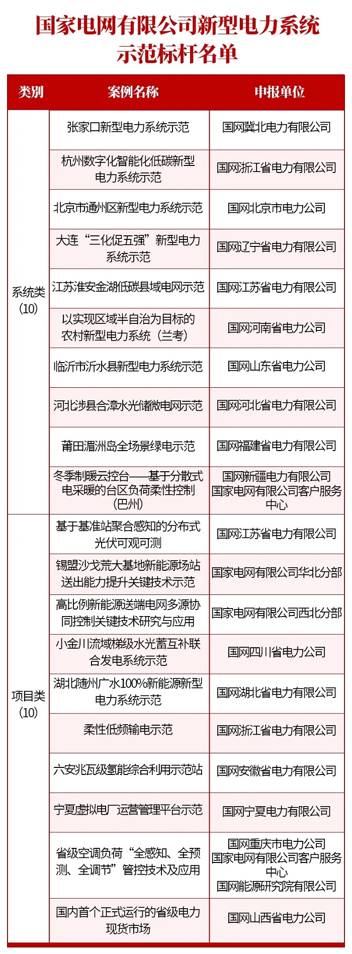 储能中国网获悉,近日,国家电网有限公司印发通知,发布新型电力系统示范标杆名单和典型案例集,包括系统类示范标杆10项、项目类示范标杆10项。 为贯彻党中央、国务院关于碳达峰碳中和、构建新型电力系统等重大战略部署,落实《加快构建新型电力系统行动方案(2024-2027年)》,总结推广示范建设经验,公司组织开展了新型电力系统示范标杆评选工作。 本次评选面向公司经营区6家分部和27家省级电力公司公开征集,涵盖新型电力系统源、网、荷、储、体制机制各环节。示范标杆典型案例分为系统类和项目类,其中系统类重点包括市、县、园区(村镇)级新型电力系统,项目类重点包括且不限于电力供应保障能力提升、新能源高质量开发利用、新型电网技术创新、用户侧灵活调节能力提升和体制机制技术综合创新等五大类多个方向。 经材料申报、形式审核、初步评选、会议评审和网上公示,公司确定新型电力系统示范标杆20项。入选的案例在理论方法、技术装备、运行模式和体制机制等方面具有较强的实用性、创新性和可推广性,在实际运行中已取得明显成效,对同类场景具有较强的示范推广价值。 公司要求各单位学习借鉴新型电力系统示范标杆的好做法,结合各地资源禀赋和电网特点,因地制宜、因时制宜、因网制宜,有力有序推进示范建设,发挥典型引领带动作用。 |