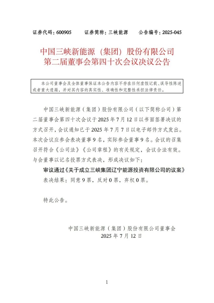 储能中国网获悉,7月15日,三峡能源发布公告称,审议通过《关于成立三峡集团辽宁能源投资有限公司的议案》。 三峡能源第二届董事会第四十次会议于2025年7月12日以书面签署决议的方式召开,会议通知已于2025年7月7日以电子邮件方式发出。本次会议应参会表决董事9名,实际参会董事9名。会议的召集召开符合《公司法》《公司章程》的有关规定,会议合法有效。 此前,三峡集团与辽宁省人民政府签署了战略合作框架协议。2024年底,三峡集团董事长、党组书记刘伟平,总经理、党组副书记李富民在辽宁省沈阳市与辽宁省委书记、省人大常委会主任郝鹏,省委副书记、省长李乐成座谈。座谈后,双方共同出席战略合作框架协议签约仪式,郝鹏、刘伟平为三峡集团东北分公司揭牌。 此次,三峡集团辽宁能源投资有限公司的成立,是对前期辽宁业务战略的深化与升级,将进一步整合资源、加速项目落地,并为区域能源转型注入新动能。 据三峡集团官网介绍,三峡集团历经30多年持续高质量发展,现已成为全球最大的水电开发运营企业和我国领先的清洁能源、生态环保集团,是国务院国资委确定的首批创建世界一流示范企业之一。 截至2024年底,三峡集团可控装机1.58亿千瓦,资产总额1.5万亿元,资信评级保持央企最高级别;利润总额、归母净利润、成本费用利润率、全员劳动生产率、人均利润等指标继续位居中央企业前列。在中央企业年度经营业绩考核中连续17年获评A级。 作为三峡集团新能源业务的核心实施主体,三峡能源近年来在辽宁已形成规模化布局。目前,其在辽宁设立的岫岩满族自治县350MW风电场项目已于2025年5月并网发电,每年可贡献3.5亿千瓦时清洁电力,创造约3000万元利税,并配套建设40MW/80MWh储能系统。此外,三峡能源在辽宁还设有彰武、朝阳、大连等10余家发电公司,业务覆盖风电、光伏等领域。 辽宁作为东北老工业基地,正加速推进清洁能源强省建设。截至2024年6月,全省清洁能源装机容量达3813万千瓦,占总装机量的50.5%,发电量占比53.6%,首次超过火电。根据“十四五”规划,辽宁计划到2025年实现非化石能源装机比重超50%,风电、光伏总装机超4000万千瓦。此次成立辽宁能源投资公司,正是三峡能源深度融入地方战略、推动新能源规模化开发的重要举措。 新公司将聚焦辽宁地区风电、光伏、储能等新能源项目的投资与运营,同时探索“风光火储”一体化模式。例如,三峡集团此前在吉林双辽的“牧光互补”项目,通过光伏发电与畜牧养殖结合,实现生态修复与经济效益双赢。在辽宁,类似模式有望复制推广,尤其在盐碱地治理、绿电制氢等领域形成示范效应。 值得关注的是,三峡能源近期还收购了辽宁营口燃气调峰发电项目,计划投资23.96亿元建设燃气联合循环机组,进一步完善多能互补体系。 新公司将依托集团在技术、资金和产业链整合方面的优势,加速推进辽宁海上风电、陆上大基地及储能项目落地,助力地方经济绿色转型。数据显示,截至2024年底,三峡能源全球装机规模已达4800万千瓦,资产总额超3500亿元,稳居行业前列。此次布局辽宁,不仅是其“海上风电引领者”战略的延伸,更是响应国家“沙戈荒”基地开发、服务东北全面振兴的具体实践。 随着辽宁能源结构转型加速,三峡集团的深度参与将推动当地新能源产业链升级,预计未来五年在辽宁的投资规模将超百亿元,带动就业及上下游产业协同发展。 |