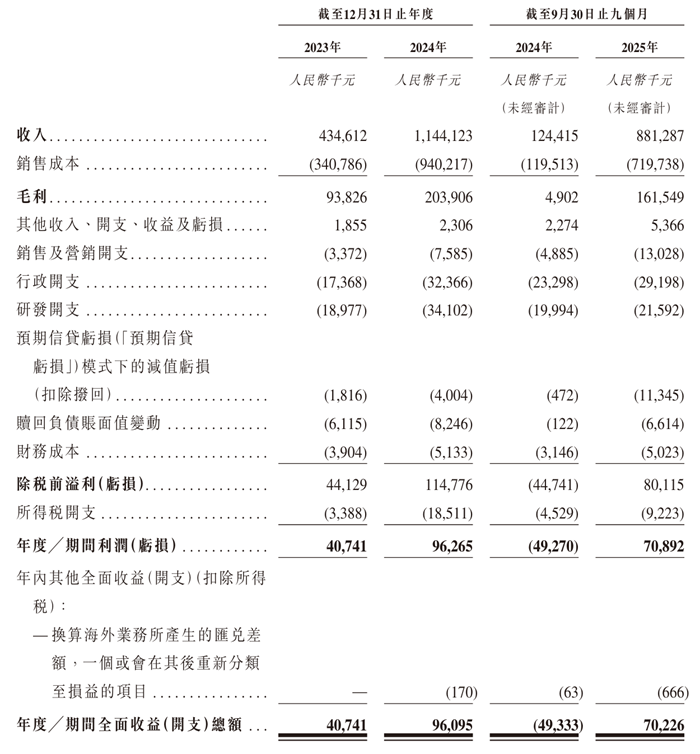 远信储能2025年前9个月营收为8.82亿,毛利为1.62亿元,期内利润为7089万元。
