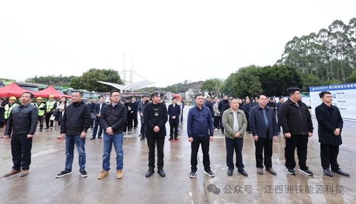 2026年2月27日,赣州蓉江新区江西洲铁独立储能示范项目开工仪式隆重举行,区领导谢清泉、邱隆贵参加开工仪式。赣州市能源发展中心副主任赖荣,祥光集团董事长肖庆祥,北京泓慧国际能源技术发展股份有限公司董事长王佳良、中国电建集团江西省电力设计院有限公司副总经理曹小群、平高集团储能科技有限公司总经理杨振元,南昌明昂能源科技董事长明瑞勤等多位领导及嘉宾出席仪式,江西洲铁能源科技有限公司董事长肖斌、总经理明亮陪同见证项目开工重要时刻,各参建单位、相关合作企业及新区各部门代表约百余人齐聚现场,共同见证这一重要时刻。祥光集团董事长肖庆祥宣布开工,工程车鸣笛、彩烟齐放,标志着江西省首批独立储能试点示范项目正式进入建设阶段。