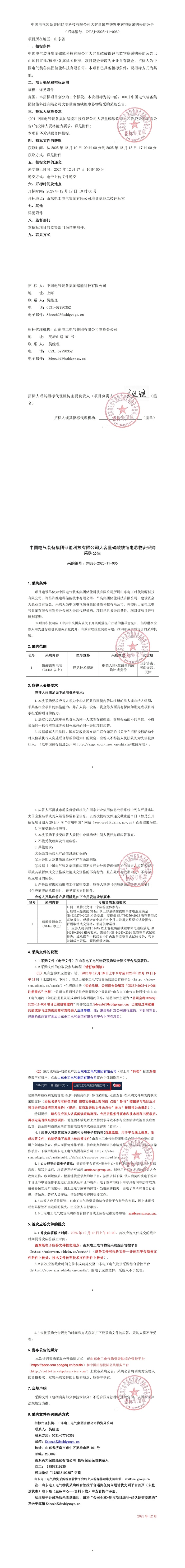 储能中国网获悉,12月10日,中国电气装备集团储能科技有限公司发布大容量磷酸铁锂电芯物资采购公告。采购范围:采购314Ah以上电芯,通过框架入围+邀请谈判或询比或竞价。 公告表示,项目建设单位为中国电气装备集团储能科技有限公司所属山东电工时代能源科技有限公司、许昌许继电科储能技术有限公司、平高集团储能科技有限公司。 公告原文如下: