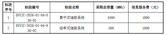第一批储能系统设备: 分为两个标段,采购总规模5GWh,其中集中式储能系统采购总容量4500MWh,组串式储能系统采购总容量500MWh。